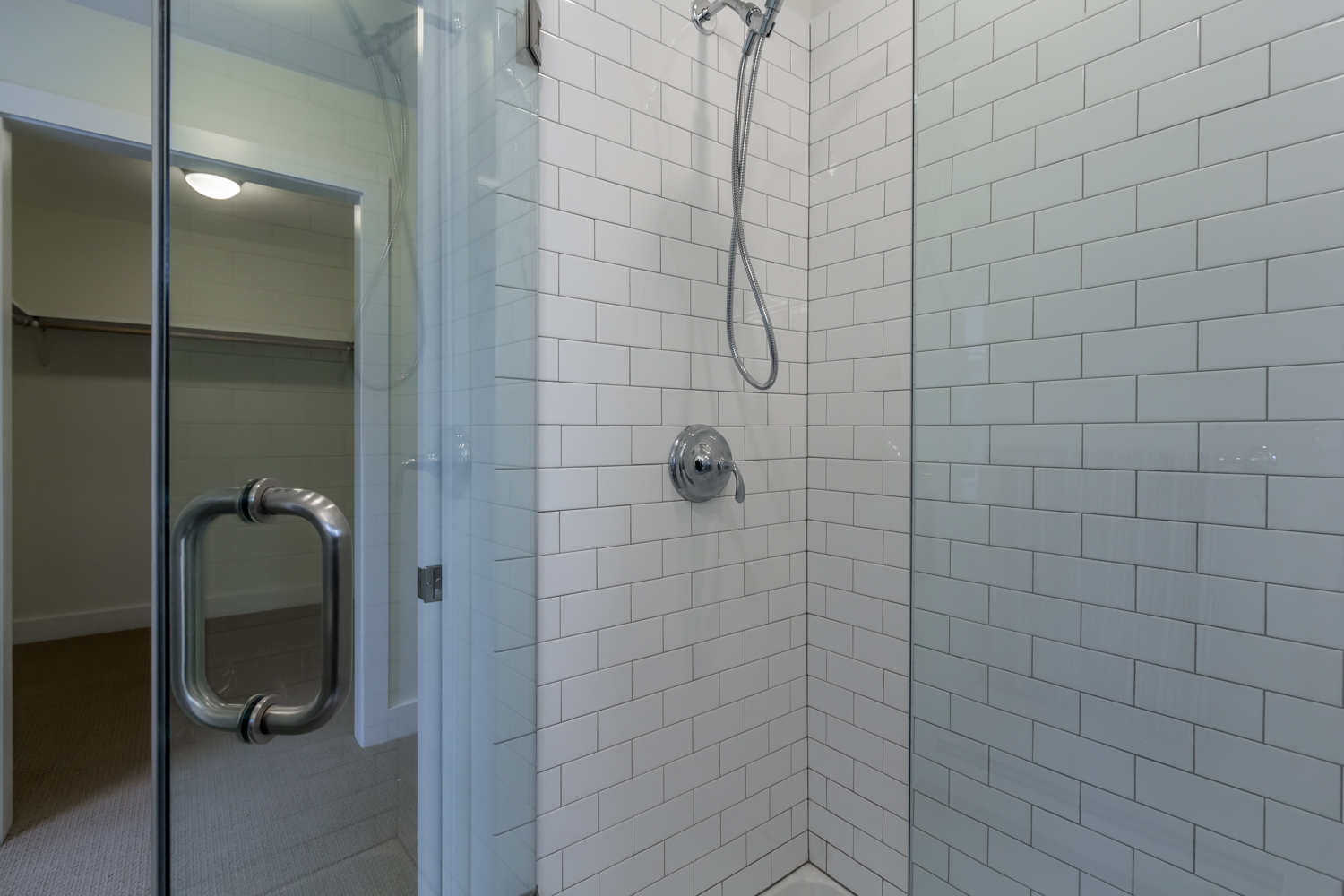 Tile-surround shower with glass door